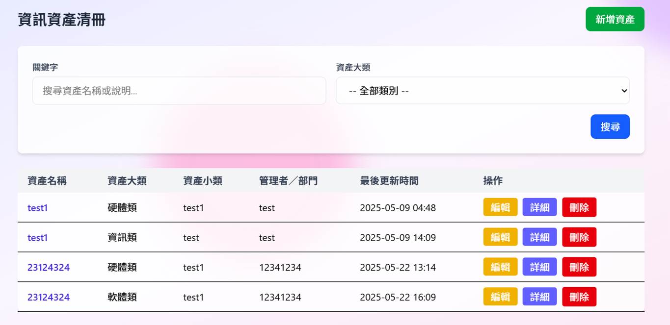 - ✓資產清冊維護與風險評估